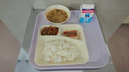 【ごはん 牛乳 あかうおの醤油だれかけ 味噌汁 きんぴら牛蒡】