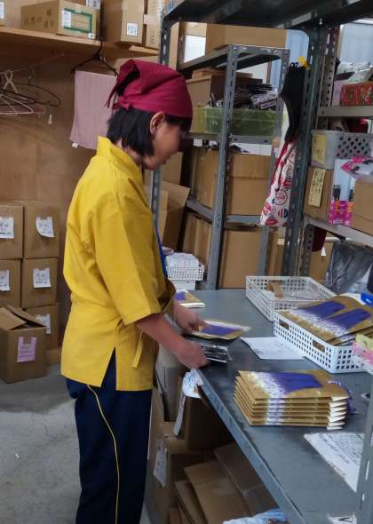 箱や袋に商品を入れたり、試食の準備・提供をしたりと、様々なお仕事をさせていただいています。