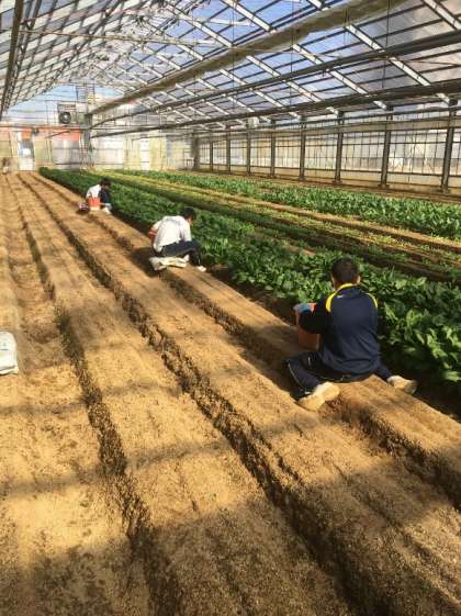肥料入れを行いました。また、立派なほうれん草を育てるために、雑草抜きにも励みました!