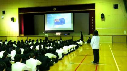 夏休みにニュージーランドに留学していた古田さんが発表をしてくれました。