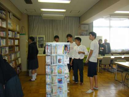 元気アップコーディネーターさんが図書室をリニューアルしてくださいました。今日は、リニューアルオープンの日。久しぶりの図書室開館のお手伝いをボランティアさんにしていただきました。きちんと整理され、ゆっくりと本を選ぶスペースが出来た図書室に足を踏み入れた生徒からは、思わず拍手が・・・!! 「きれいになった」と喜んでくれました。昼休みは巡視や給食対応等で先生方は大忙し・・・。ボランティアさんに図書室開館をしていただくと大助かりです。今後ともよろしくお願い致します☆