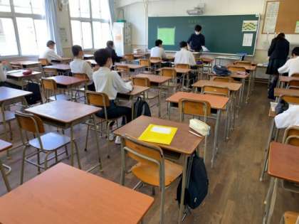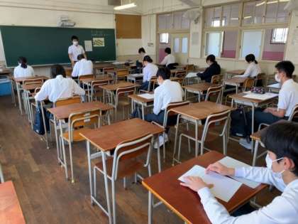 前回の登校日と同じく、全員がマスクの着用と検温をしてから登校してきました。