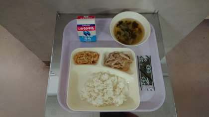 ごはん 牛乳 豚肉の甘辛焼き すまし汁 切り干し大根のいため煮 焼きのり