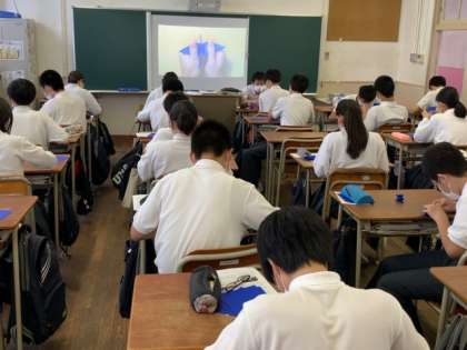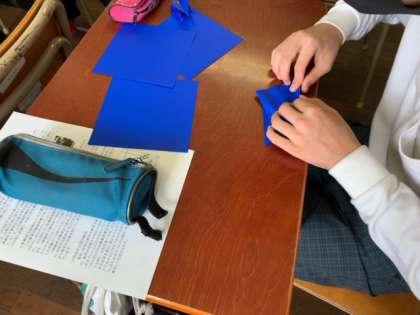 鶴の折り方がわからない生徒は折れる生徒に教えてもらいながら、みなさん平和への願いを込めて丁寧に折っていました。