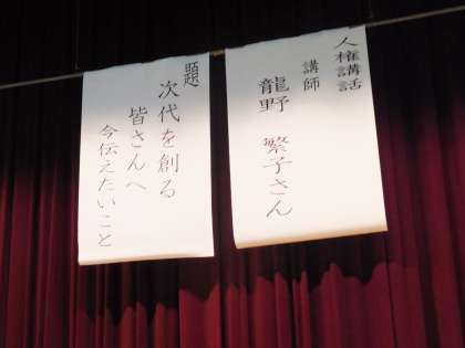 今日の5限に体育館にて人権講話がありました。今回は模擬原爆の体験者である龍野さんにお越しいただき、ご自身の体験をお聞きすることができました。