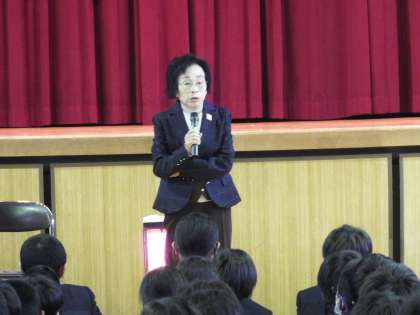 実際に体験した方からの、自分たちの住む町の話だったので、しっかりと受け止めることができたようです。多くの生徒が「二度と戦争はしてはいけない」という思いを改めて強くもてた、貴重な1時間となりました。