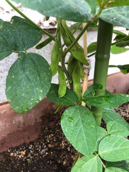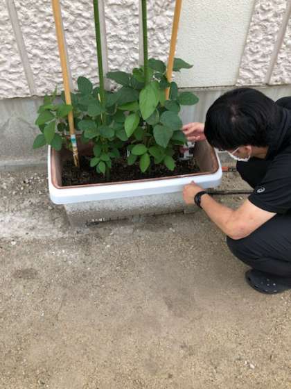 田辺中学校では、枝豆、なす、きゅうり、ゴーヤを育てています。