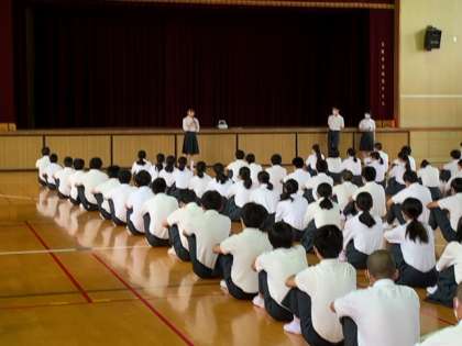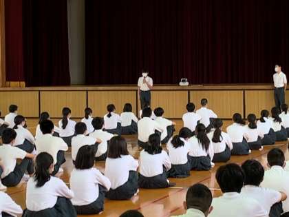 本日の3年生の学年集会では、生徒専門委員会で決定した目標を代表者が発表してくれました。