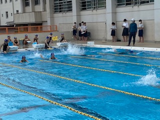 3年1組・2組の女子の1時間目の体育は、今年初めての水泳でしたが、よくがんばっていました♪