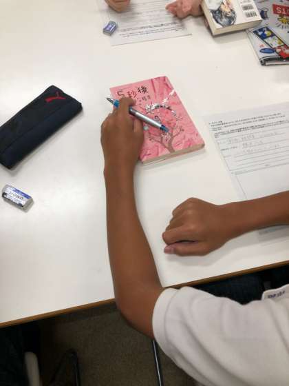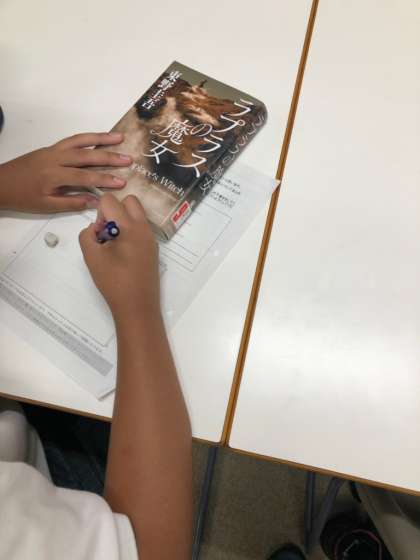 文化委員会では、皆さんに図書室の本に親しんでもらえるように、おすすめの本を選んでポップを書いてくれました。
