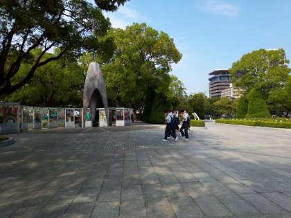 午後のフィールドワークが終りました。天気が良くなりすぎて暑いです。バスに乗ってすぐにスポーツドリンクをもらい助かりました。フィールドワークの間、折り鶴タワーでお土産を買いました。これからホテルに向かいます。