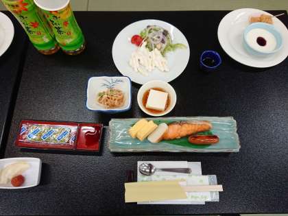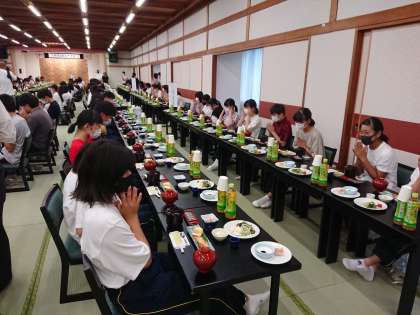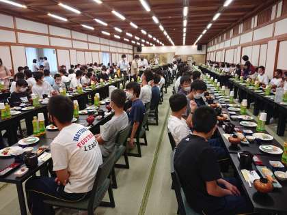 おはようございます。今、朝食をとっています。少し体調に不安がある人もいますが、心配していた高熱などの症状はありません。予定通りのプログラムで進めます。朝食の様子を見ているとみんな元気なようです。