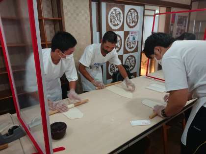 金比羅さん近くの中野うどん学校でうどんを作り始めました。