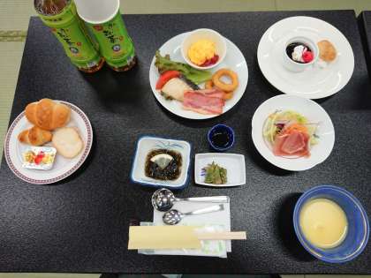 今は雨は降っていませんが予報では天気が心配です。でも最終日を元気に過ごすためしっかり朝食をとりましょう。