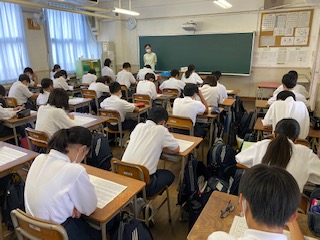 6時間目に生徒会役員選挙が行われました。いつもなら体育館に全校生徒が集まるのですが、今年は放送室から放送で演説を流しました。