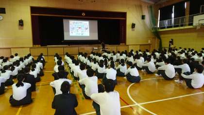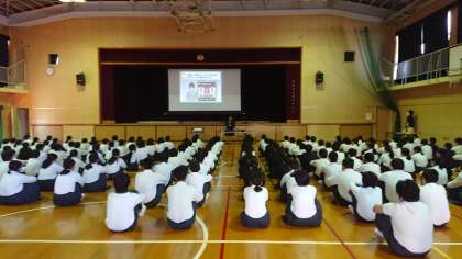 今日の5時間目は2年生対象に人権講話がありました。NTTの方と法務局の方に来ていただき、SNSやコミュニケーションアプリの使い方のお話をしていただきました。