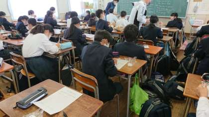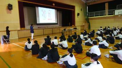 1年生は午後から盛りだくさんでした。5限は体育館で歯と口の健康教室、6限は文化祭の説明のあと、備蓄していたアルファ化米で作ったおにぎりの試食をしていました。特においしいとかおいしくないとか反応は聞こえてきませんでしたが、非常食のアルファ化米おにぎりはどんな味だったでしょうか。