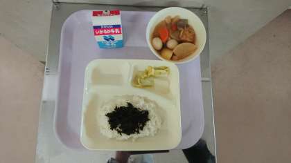 ごはん 牛乳 関東煮 白菜の甘酢あえ 海苔のつくだ煮