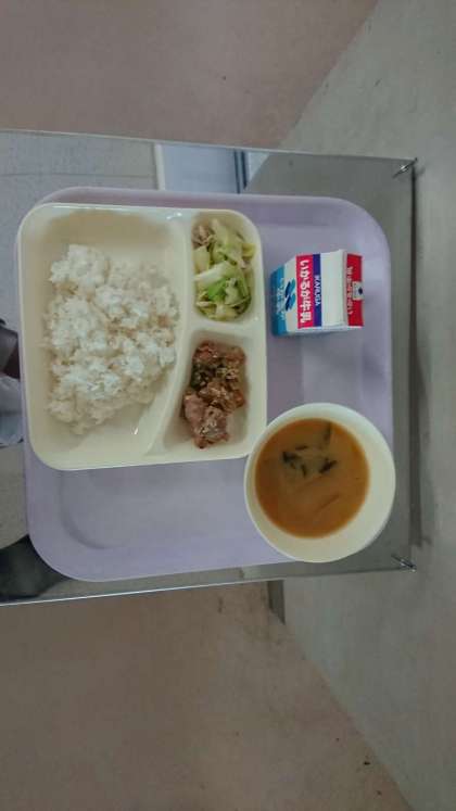 ごはん 牛乳 鶏肉のゴマだれ焼き なめこのみそ汁 キャベツの炒め物