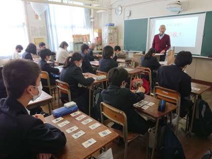 2年生は今日と明日に渡って各クラス1時間を使い、キャリア教育に取り組んでいます。内容はヒューマンキャンパスから講師の方に来ていただき、SPトランプをしています。SPとはサブパーソナルの略らしく、自分の持っている性格を表しているカードを10枚選ぶことから始まります。自己理解、自己分析また他者理解につながるようです。自分がどんな職業に向いているかも判明します。たくさんの企業も取り入れているようですね。