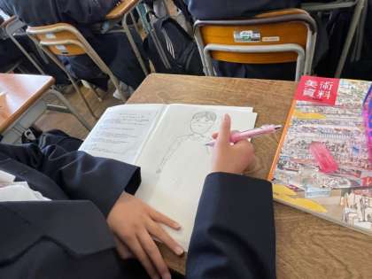 美術の時間では、先生をモデルに「人物クロッキー」をしました。