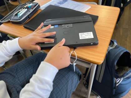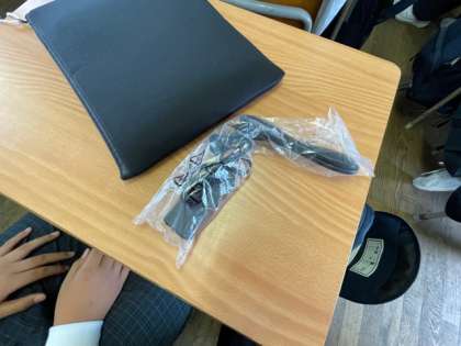 今日、一人に一台ずつ学習者端末を持ち帰りました。