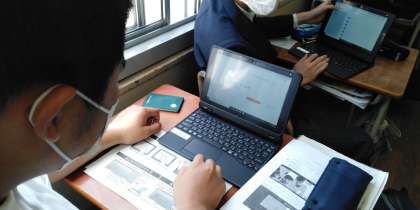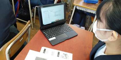 写真は、"まなびポケット"という、動画学習できる教材を用いて、学習している様子です。生徒たちは、学習したばかりの単元や、1,2年生で習った単元を学習していました。