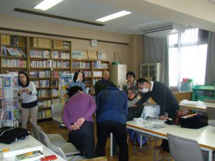 元気アップの図書ボランティアの皆さんが、図書室の本のバーコード化に向けて取組みを進めてくださっています。今日は9人の皆さんが、業者さんの説明を聞き、さっそく本のバーコードを作成、一冊づつの本に張り付ける作業を進めてくださいました。お忙しい中を本当にありがとうございます☆
