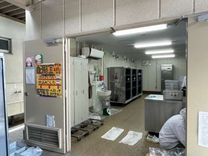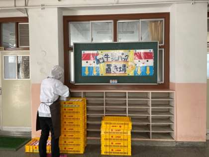 給食配膳室では、3人の配膳員さんが配膳作業や片づけなどを行ってくださっています。