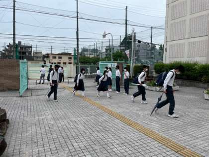 今日と明日の二日間は、午前の4時間の授業、給食、給食後下校し午後からの家庭での学習になります。