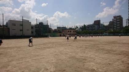 元気よく体を動かし、50m走のタイムを測定していました。こまめに水分を補給しながら行われています。