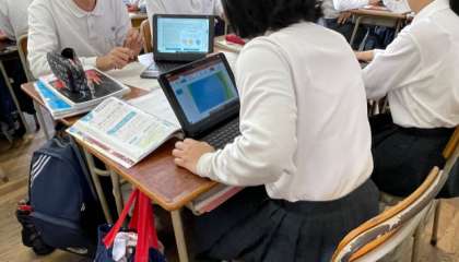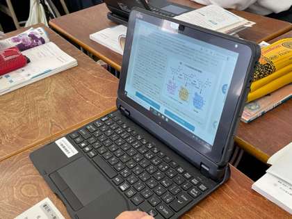 タブレット端末を活用し情報収集を行い、各班でポスターを作成し、発表します。