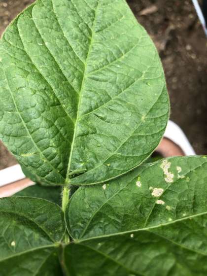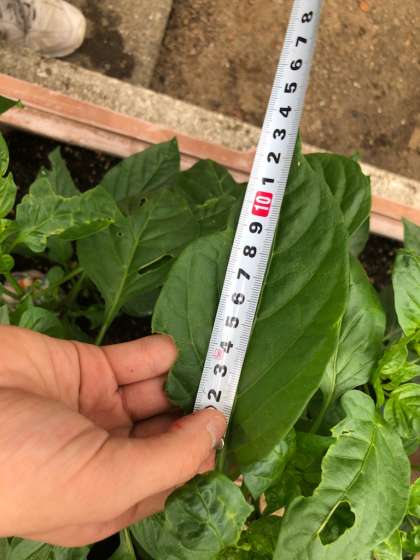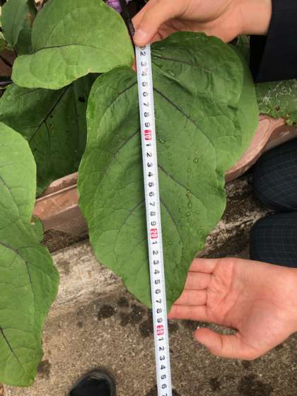 なすびの葉は約29cm、ピーマンの葉は約14cmとすくすく成長していました。