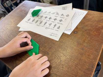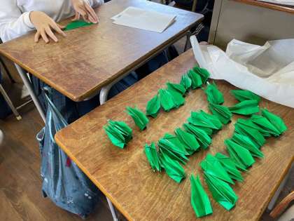 平和の実現に向けて私たちに何ができるかを考えながら鶴を折りました。