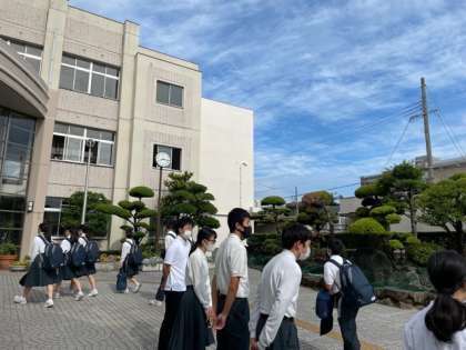 風紀委員さんが挨拶運動を行っています。