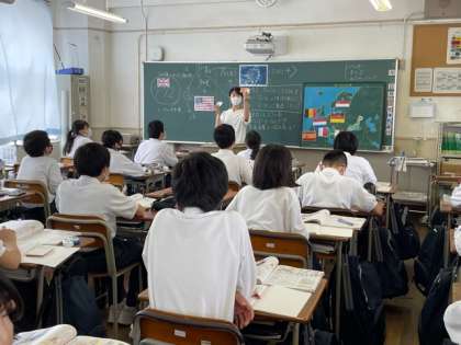 社会では、ヨーロッパ州について学習しました。共通通貨のユーロを先生が見せてくださっています。硬貨については各国でデザインが違うとのこと。調べ学習のテーマにできると教えてくださいました。
