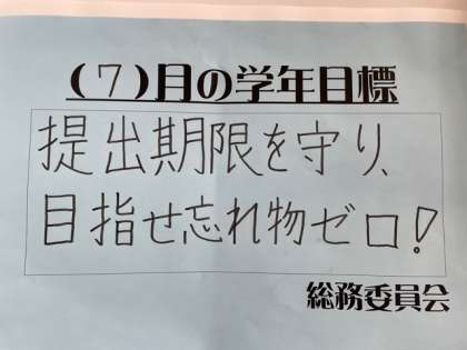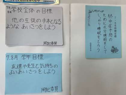 各教室に学年目標を各委員さんが丁寧に書き、掲示しています。