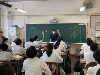 体育は「前方倒立回転跳び」を練習していました。上手に跳べる人も苦手な人もみんなが前向きに取り組んでいました。頼もしい姿です。