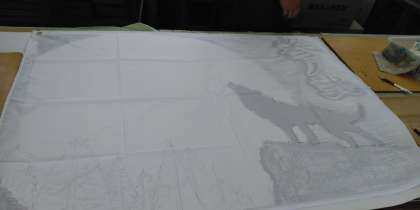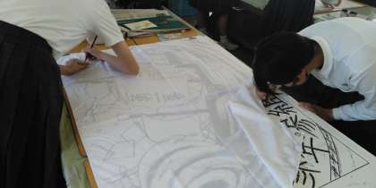今日の放課後、各クラスの代表者2、3名が学級旗の作製に取り組みました。