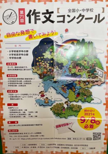 職員室前の掲示板に作文コンクールの案内が掲示されています。