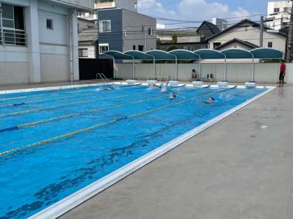 今日の暑い日には、プールで泳ぐのは気持ちがよいですね。