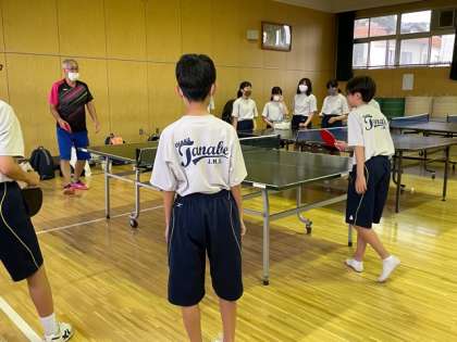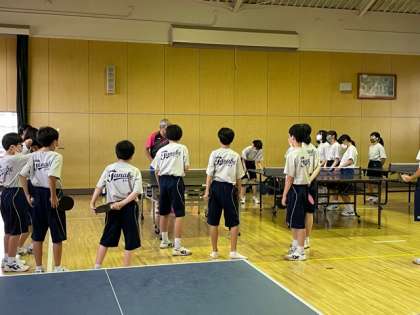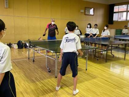 卓球部に部活動支援員さんがきていただくことになり、部活動の指導をしていただいています。