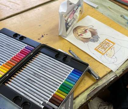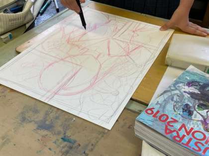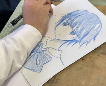 美術部がコンクール出品のため、作品づくりをしています。