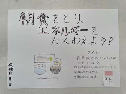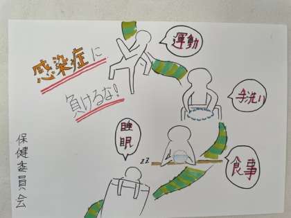 保健委員会のみなさんがポスターを作り、各学年で掲示してくれています。