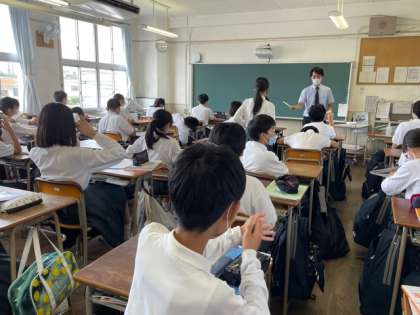 担任の先生のお話を楽しくて、みんな笑顔いっぱいのクラスです。