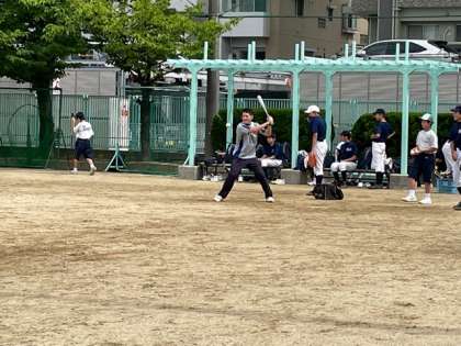 野球部では、今日から部活動指導員として田辺中学校野球部OBの方にきていただきました。