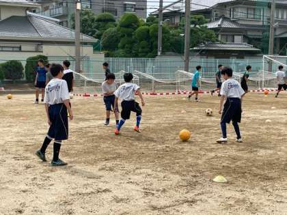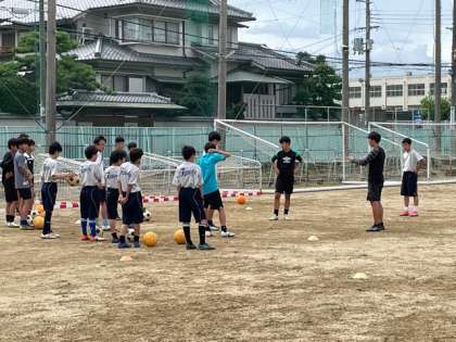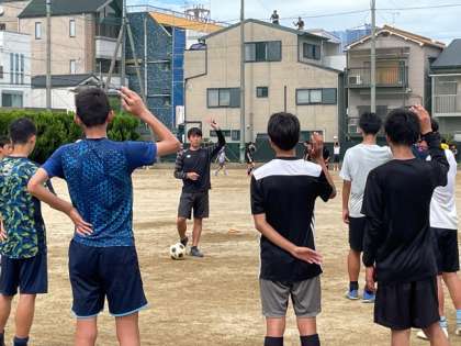 サッカー部では、顧問の先生からボールの扱い方について教えていただいています。