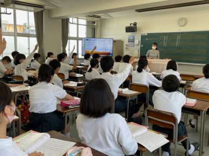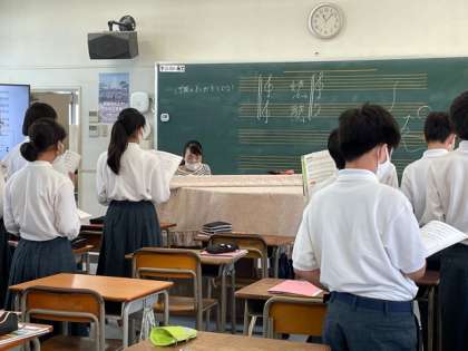 1年4組社会、1年5組音楽の授業です。