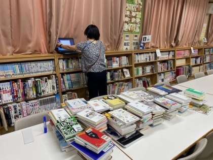 図書館では、蔵書点検を元気アップコーティネーターさんと東住吉区教育活動サポーター、図書館支援員さんで行ってくださいました。