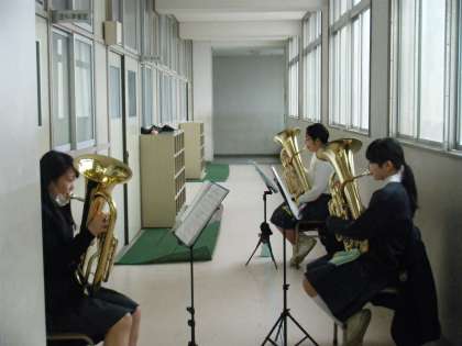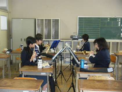 学校中に素敵な音色が響き渡ります。パート練習に余念がない吹奏楽部です☆